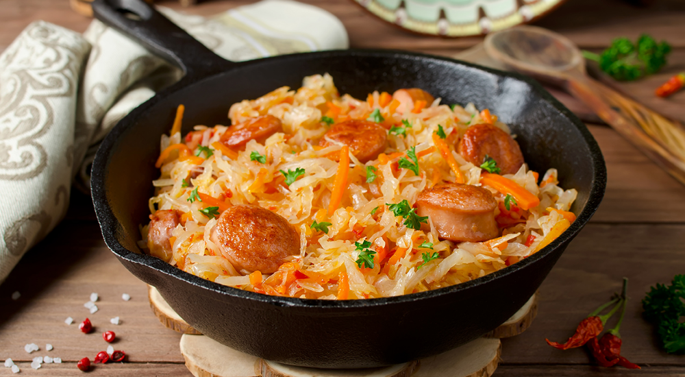 Тушеная капуста с сосисками: простой рецепт на сковороде