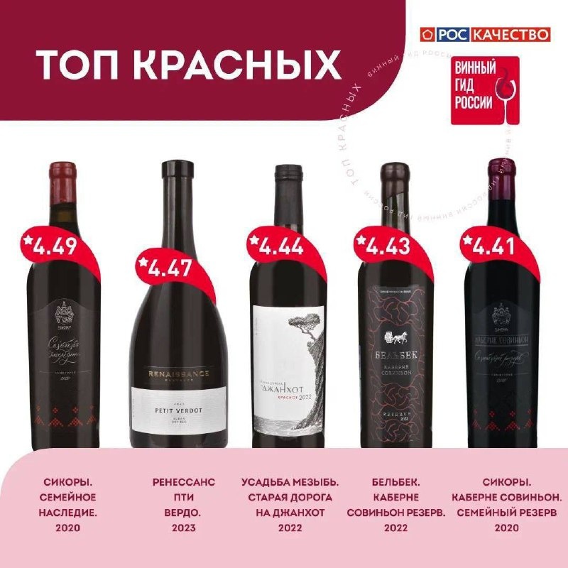 🍷 Топ-10 от Роскачества на пятничный вечер Роскачество проверило 206 красных российских вин и выбрало лучшие. Сохраняйте годную подборку: 1️⃣ Сикоры "Семейное наследие" 2️⃣Ренессанс "Пти Вердо" 3️⃣Усадьба Мезыбь "Старая дорога на Джанхот" 4️⃣Бельбек "Каберне Совиньон Резерв" 5️⃣ Сикоры "Каберне Совиньон Семейный Резерв" 6️⃣ Альма Валлей "Мерло Резерв" 7️⃣Мысхако "Шираз Блэк Аут" 8️⃣Скалистый берег "Красная книга Глава 1" 9️⃣Шумринка "Семисам Саперави-Сира Резерв" 1️⃣0️⃣Фанагория "Формула Кью" Приятных дегустаций! 📲 Читайте нас в MAX 👍 Подписаться на канал