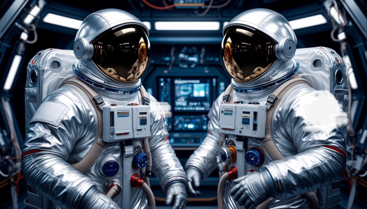 Через час ОсЛю и ГаПри, облачённые в блестящие серебряные комбинезоны для выхода в открытый космос, проверяли друг у друга системы жизнеобеспечения.