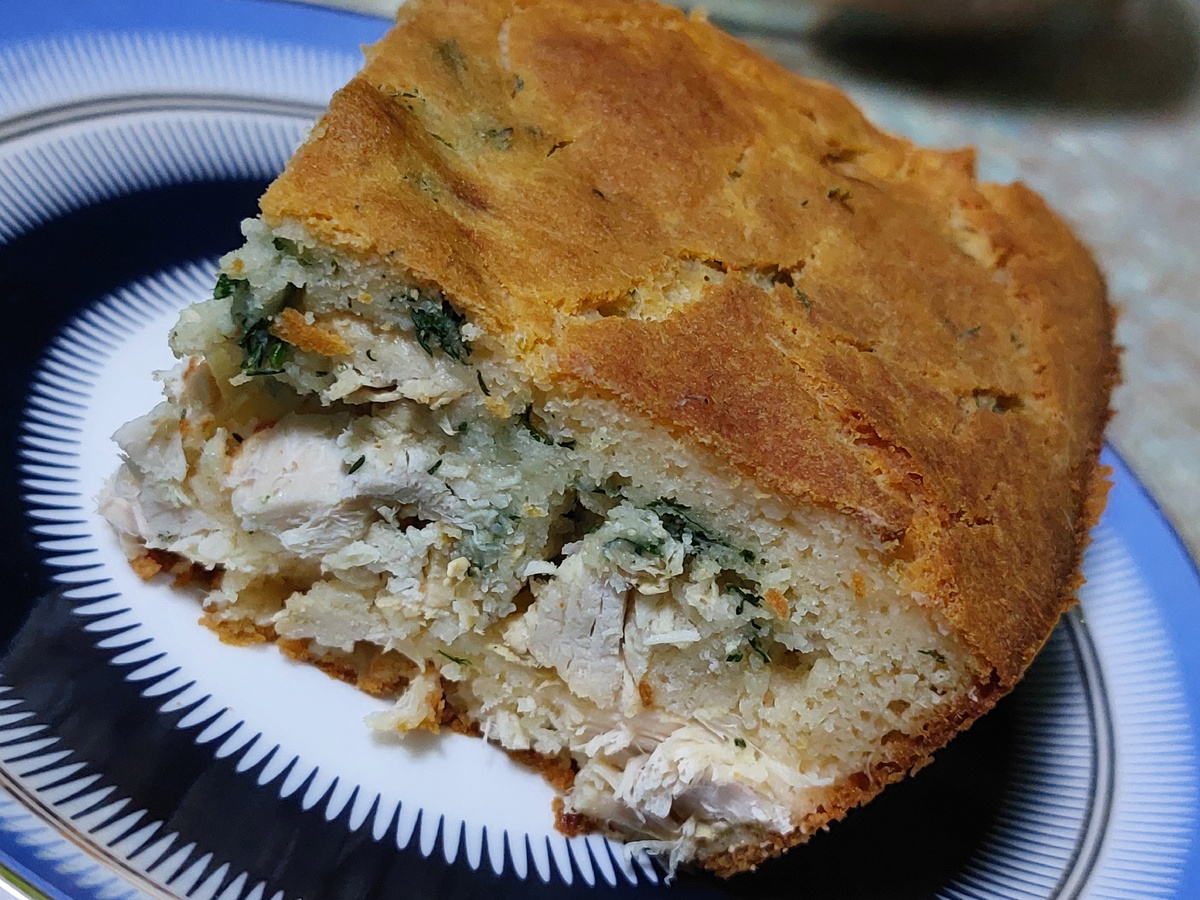 Заливной пирог с грудкой индейки и зеленью