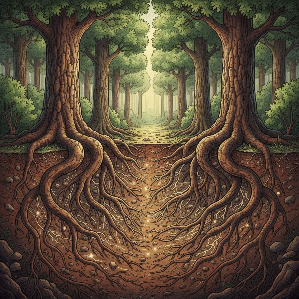 Когда мы смотрим на лес, мы видим тишину и конкуренцию. Каждое дерево борется за свет, воду и территорию, стоя особняком. Это взгляд поверхностный. Но если бы мы могли заглянуть под землю, мы бы увидели нечто невероятное: огромную, сложную, постоянно работающую сеть, которая связывает воедино всё живое. Это "Wood Wide Web" — лесной интернет, в котором деревья общаются, делятся ресурсами и предупреждают друг друга об опасности. Сегодня мы откроем страницы науки, которые доказывают: лес — это не набор одиночек, а единый суперорганизм с собственной сложной социальной структурой. 📡 Сеть, которая не боится отключения: Мицелий Главный архитектор этой сети — это Грибница (Мицелий). Это не просто одиночные грибы, которые мы собираем. Это огромная, почти невидимая сеть тончайших нитей (гифов), которые пронизывают почву на километры. Одна грибница может быть самым большим живым организмом на планете! Именно Мицелий выполняет роль кабелей в этом лесном интернете. Он прикрепляется к корня