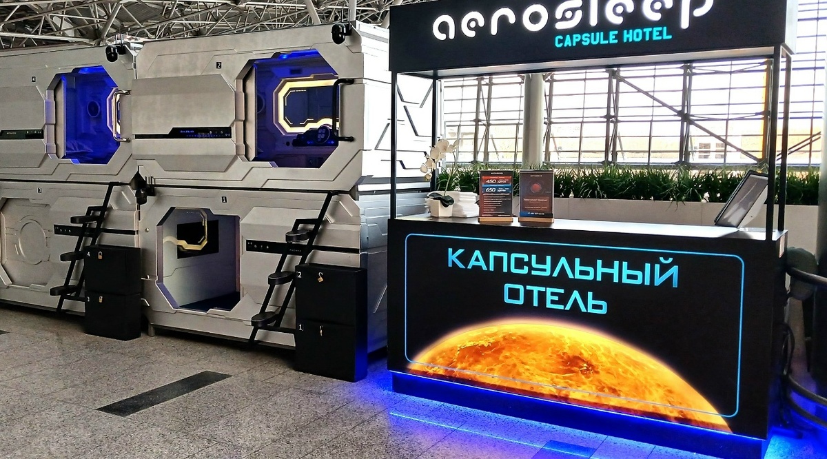 Сдали багаж, получили билеты и стали ждать свой борт. Про цены на еду в здании аэропорта говорить уже нет смысла. Как говорится, захочешь поесть – останешься без штанов. Удивило новшество – капсульный отель. Если пассажир в ожидании вылета устал сидеть, он может прилечь в капсулу. Стоимость услуги с 10:00 до 20:00 – 450 рублей в час, с 20:00 до 10:00 – 650. Дети до 12 лет могут находиться здесь вместе в родителями бесплатно. Для тех, кто жить не может без сигареты, тариф тоже не хилый: посещение курительной лаундж-зоны обойдётся курильщику в 1950 рублей.