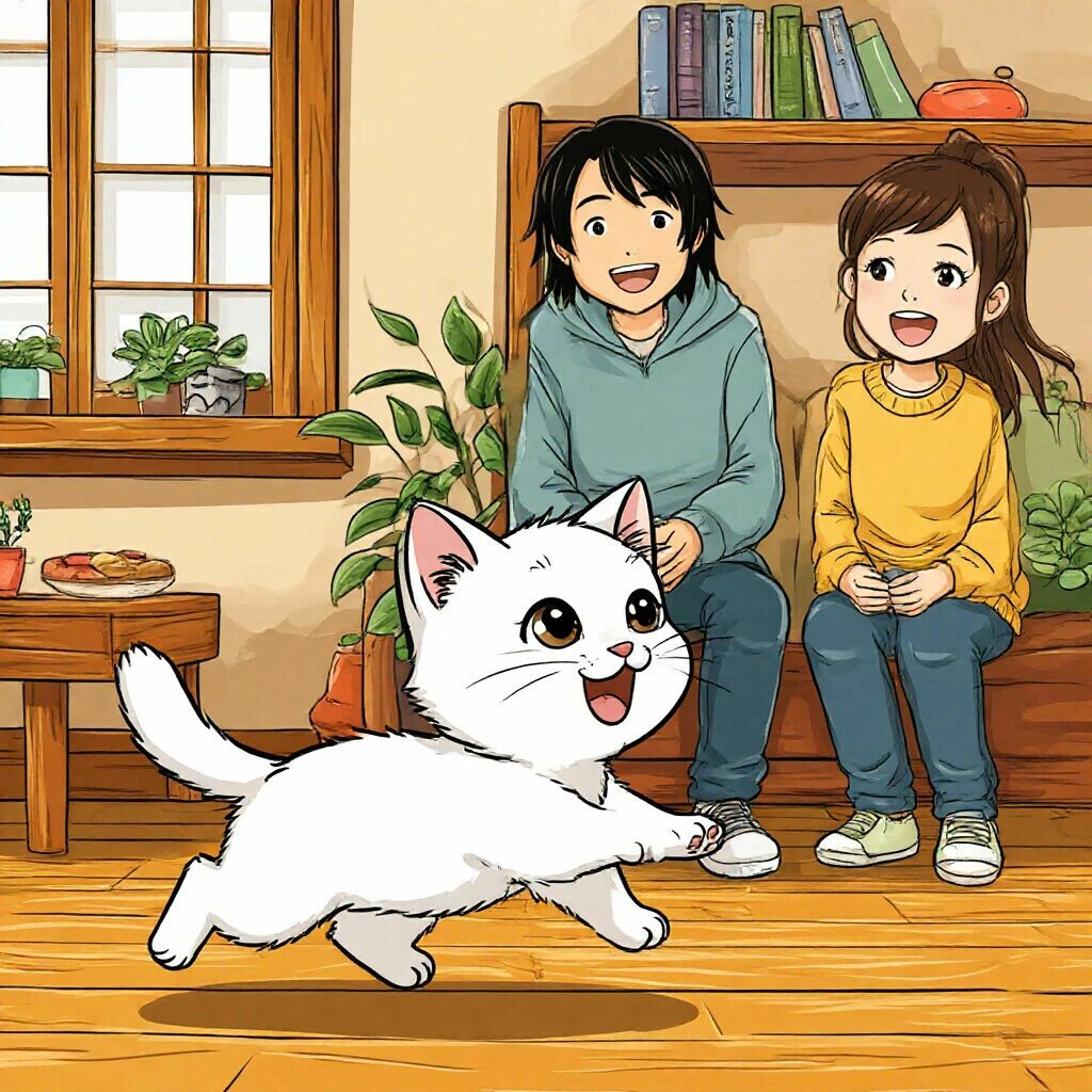 Дорогие игрушки — заводная мышка, что бегала по кругу, или пушистые шарики с колокольчиком — тоже не тронули его сердца. Он смотрел на них с вежливым недоумением, словно спрашивая: «И что с этим делать?». Гораздо веселее было гонять по полу смятый фантик на верёвочке, который Катя дёргала для него. Правда, азарт длился не