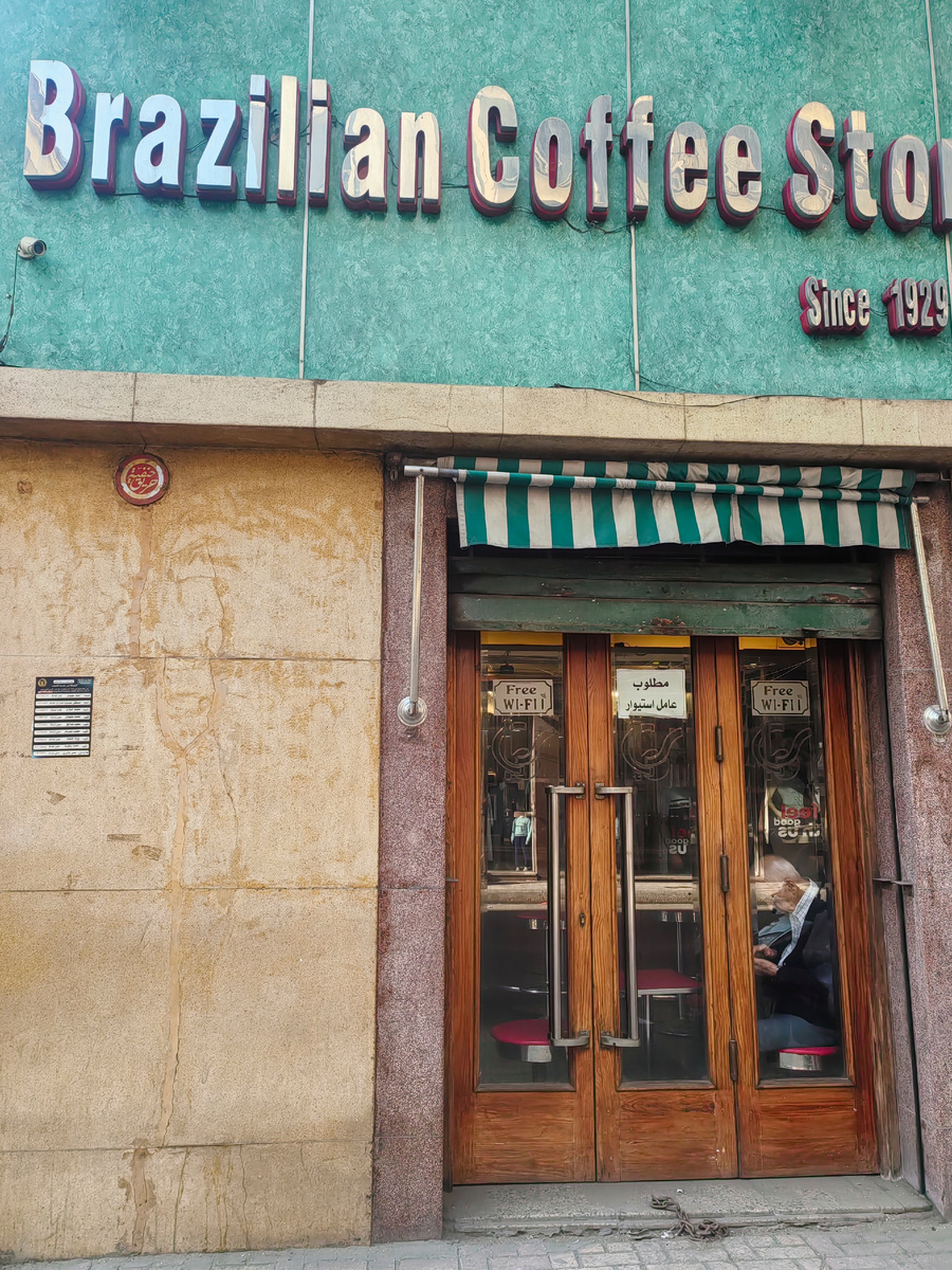 Элегантная пара в кофейне, видно, что эти люди приходят сюда лет так 45-50.Во времена их молодости это место было дорогим и модным. А сейчас это скорее некий законсервированный кусочек европейской Александрии. Кусочек Александрии которой уже давно нет.