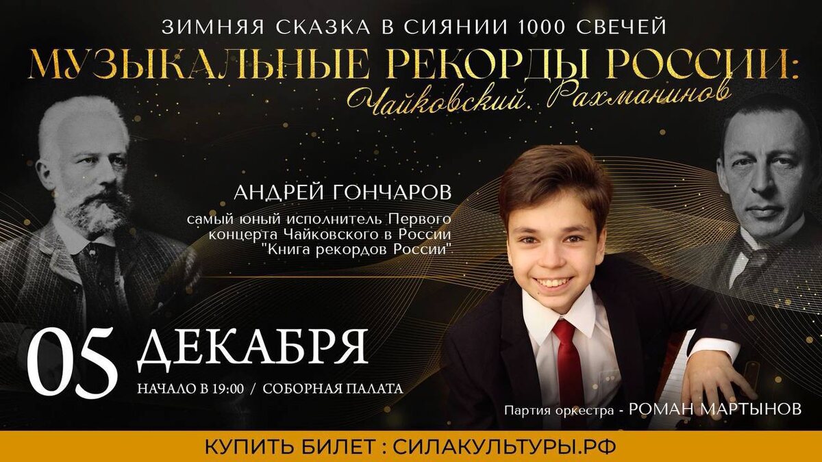 🎹 УНИКАЛЬНАЯ ПРЕМЬЕРА! 🎁 5 декабря в Соборной палате – музыкальный подарок для жителей и гостей Москвы к 150-летию Московской премьеры Первого концерта Петра Ильича Чайковского! ‼️В этом году исполняется ровно 150 лет с того дня, как 3 декабря 1875 года в Москве впервые прозвучал Первый концерт Чайковского в исполнении Сергея Танеева. В честь этого знаменательного события, а также в дань уважения другому титану русской музыки, Сергею Рахманинову, состоится уникальный концерт! В одном вечере вы услышите два их самых известных и любимых фортепианных концерта – произведения, которые покорили сердца миллионов слушателей по всему миру и навсегда вошли в золотой фонд классической музыки: Первый концерт П. И. Чайковского и Третий концерт С. В. Рахманинова. Оба концерта – пик виртуозности, но третий С.В.Рахманинова считается одним из самых технически сложных в репертуаре. Он требует от пианиста исключительной выносливости, силы пальце в и музыкальной зрелости. Это шедевры, которые демонс