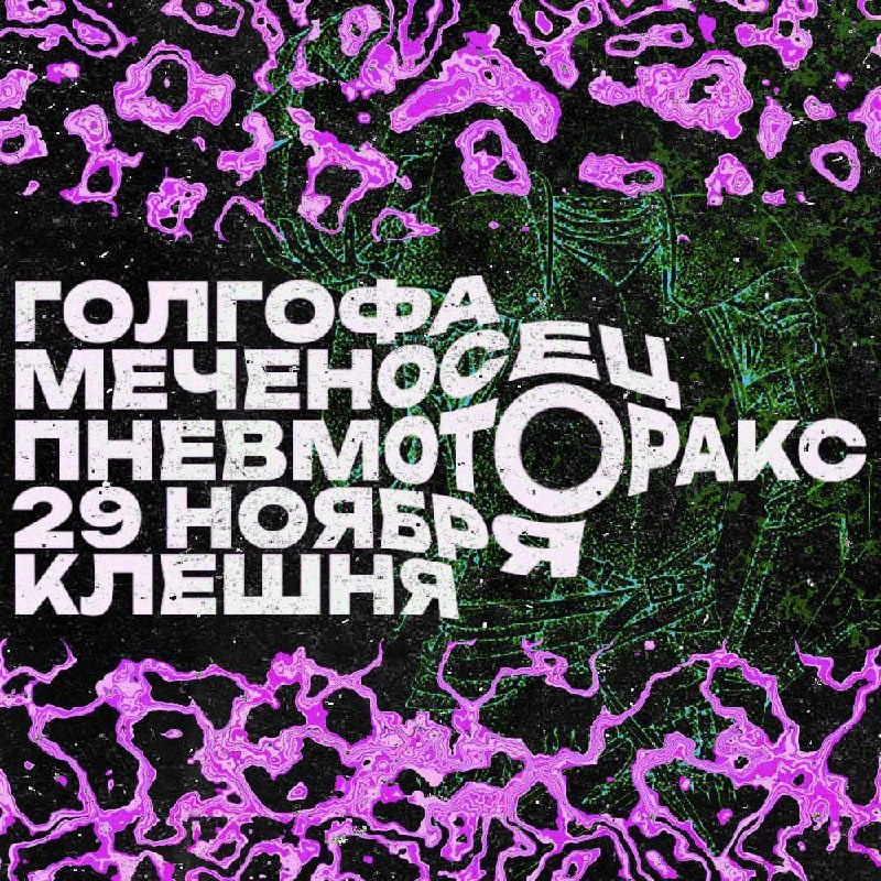 Москва ● Клешня ● 29.11 (Сб) ● 19:00 #black #doom #noise #punk #sludge #stoner ► ПНЕВМОТОРАКС|ГОЛГОФА|МЕЧЕНОСЕЦ ● VK Спешим пригласить на ритуал призыва молодой нойз-дрон группы. Обещают стены звука и поклонения идолам, все в лучших традициях Sunn O))) Участники: ► Пневмоторакс ● TG ● VK ► Голгофа ● TG ● VK ► Меченосец ● TG ● VK Билеты от 400₽