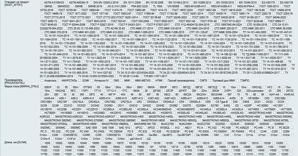 Вот они все слева направо: госты, марки стали... и дюша метёлкин
