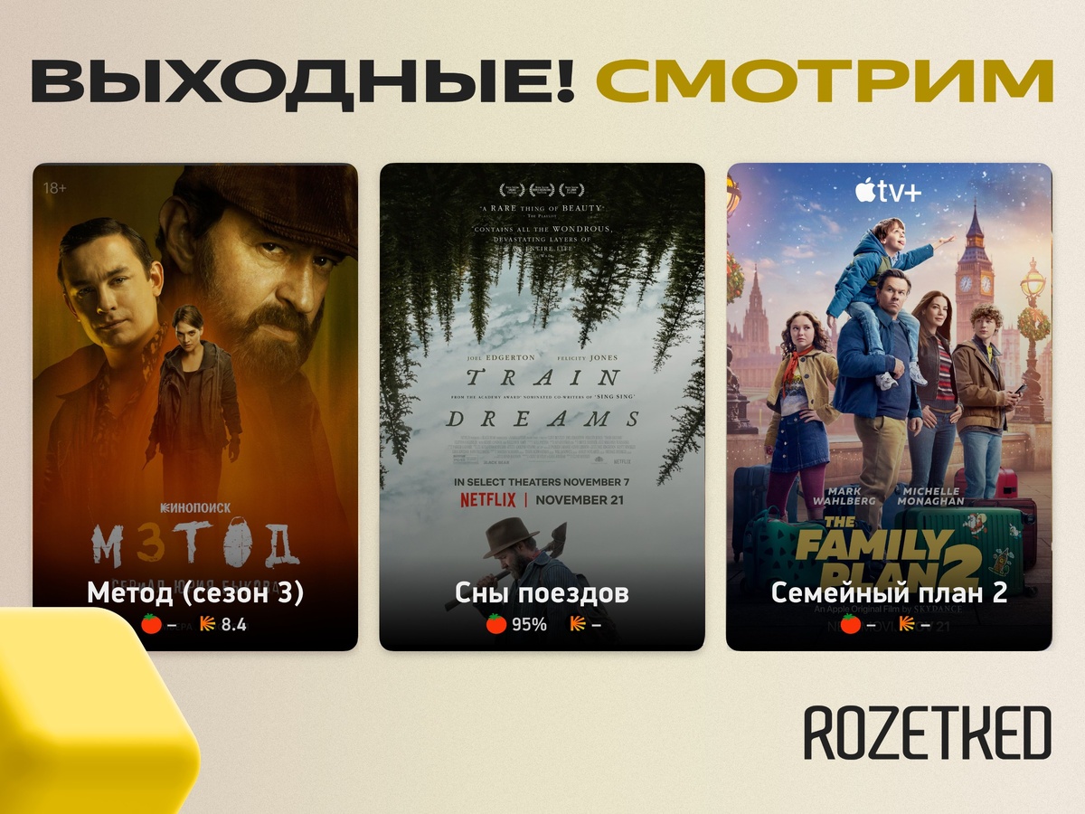 Запускаем выходные, работяги! 📺 › «Метод 3»: детектив с Константином Хабенским возвращается спустя пять лет. Смотрим на «Кинопоиске». › «Сны поездов» — экранизация одноимённой драмы о лесорубе в эпоху колоссальных перемен начала XX века. Вышел на Netflix. › «Семейный план 2» — сиквел комедийного боевика с Марком Уолбергом. На Apple TV с русскими субтитрами. 💼 Rozetked | Подписаться