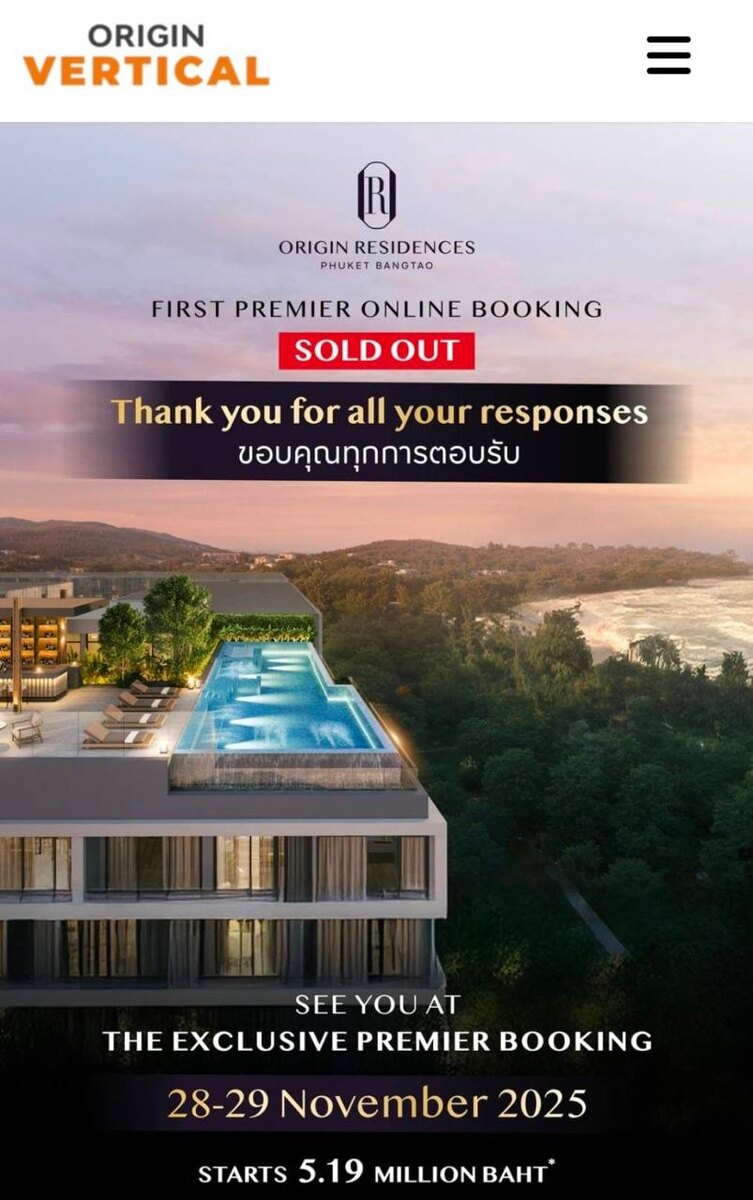 Два дня назад у нас состоялся еще один пресейл одного из топовых застройщиков Пхукета. 100 выставленных на продажу юнитов ушли за первые 30 минут. Пхукет снова демонстрирует невероятную скорость поглощения и высокий спрос со стороны инвесторов. Конечно, не каждый проект на рынке показывает такие результаты. Но те объекты, которые мы тщательно отбираем, анализируем и лично проверяем для наших клиентов, стабильно демонстрируют сильные фундаментальные показатели, высокий потенциальный ROI и долгосрочную ценность для инвесторов. Именно поэтому мы приносим нашим клиентам только лучшие возможности — те, которые делают их богаче и счастливее. 📌 На следующей неделе этот застройщик выпустит второй пул юнитов. Если хотите, чтобы ваши клиенты получили лучшие цены и прирост капитала на раннем этапе, не ждите. ⸻ Кратко о проекте: • Крупный и надёжный застройщик — Origin Property. Более 170 завершённых проектов, публичная компания, акции на бирже. • Одна из лучших и самых востребованных лока