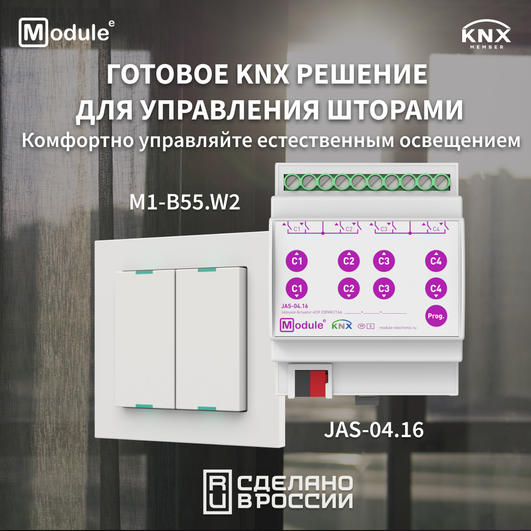 - В умном доме комфорт начинается с автоматизации света и климата — а продолжается управлением естественным освещением. Представляем универсальное решение на базе актуаторов серии JAS и выключателей серии M1.