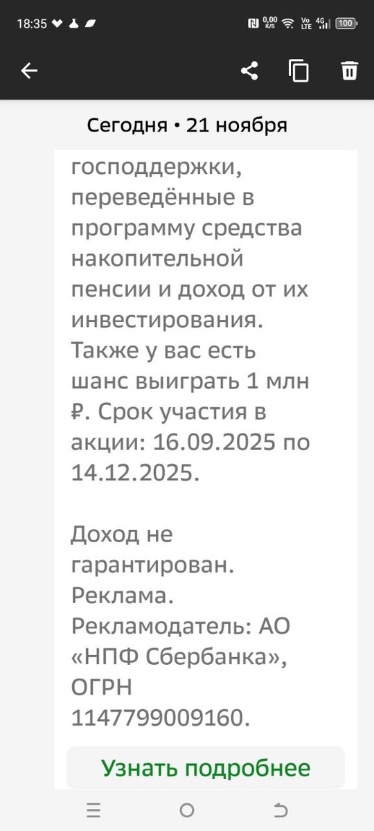 🔥👏😂 Только что пришло от Сбера! На одну страницу не поместилось, поэтому пришлось делать два скрина... И вот я так и не понял.... ❗️ Что конкретно имелось в виду в конечной фразе "Доход не гарантирован"??? 1. Доход не гарантирован по программе БДСМ, ой, простите, ПДС(Г)? 😱🙈😂 2. Доход не гарантирован по обещанному халявному миллиону? 😢😂 3. Доход не гарантирован...вообще ни по чему, это просто так, нас попросили, мы написали! 🤯😂 Но самое прикольное то, что над формулировкой рекламы ваще никто уже заморачиваться и креативить не стал! 👏😂 Просто написали "как есть", мол мы предупредили, а вы там сами решайте хотите или нет этот БДСМ, ой блин...да что такое то...в общем, к нам потом без претензий! 🔥👏👏👏😂