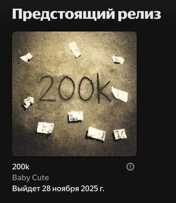 💵 Baby Cute выпустит новый сингл «200к» в следующую пятницу — 28 ноября