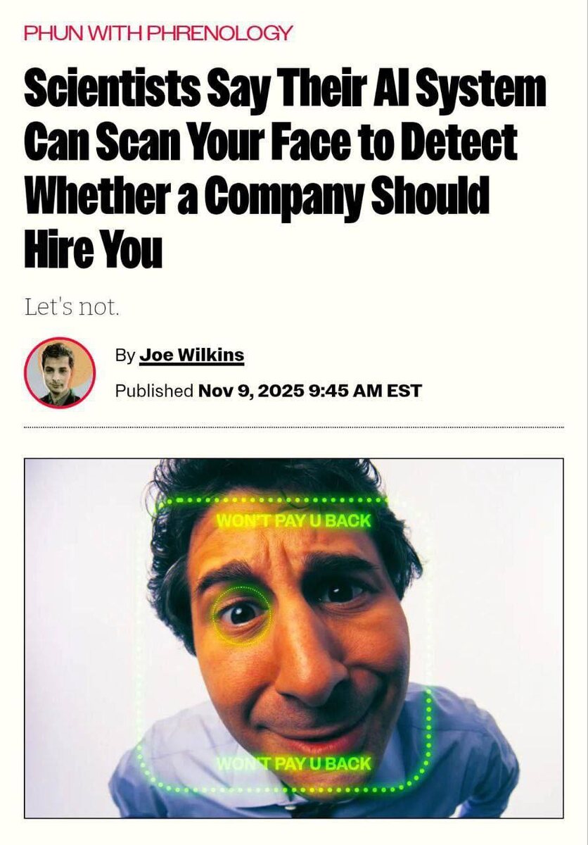 ИИ теперь может определить по фотографии, подходишь ли ты для работы 😲 Учёные обучили модель на базе 96 тысяч лиц, и теперь алгоритм способен по одному снимку «оценивать» человека: подходит ли он для определённой должности, каков его предполагаемый характер и даже карьерный потенциал. Оффер или отказ всего за несколько секунд анализа машиной. 💼 NeuroFlux #ИИ #технологии #оценка #работа #алгоритмы #карьерныйпотенциал #наука #искусственныйинтеллект #фотография #инновации