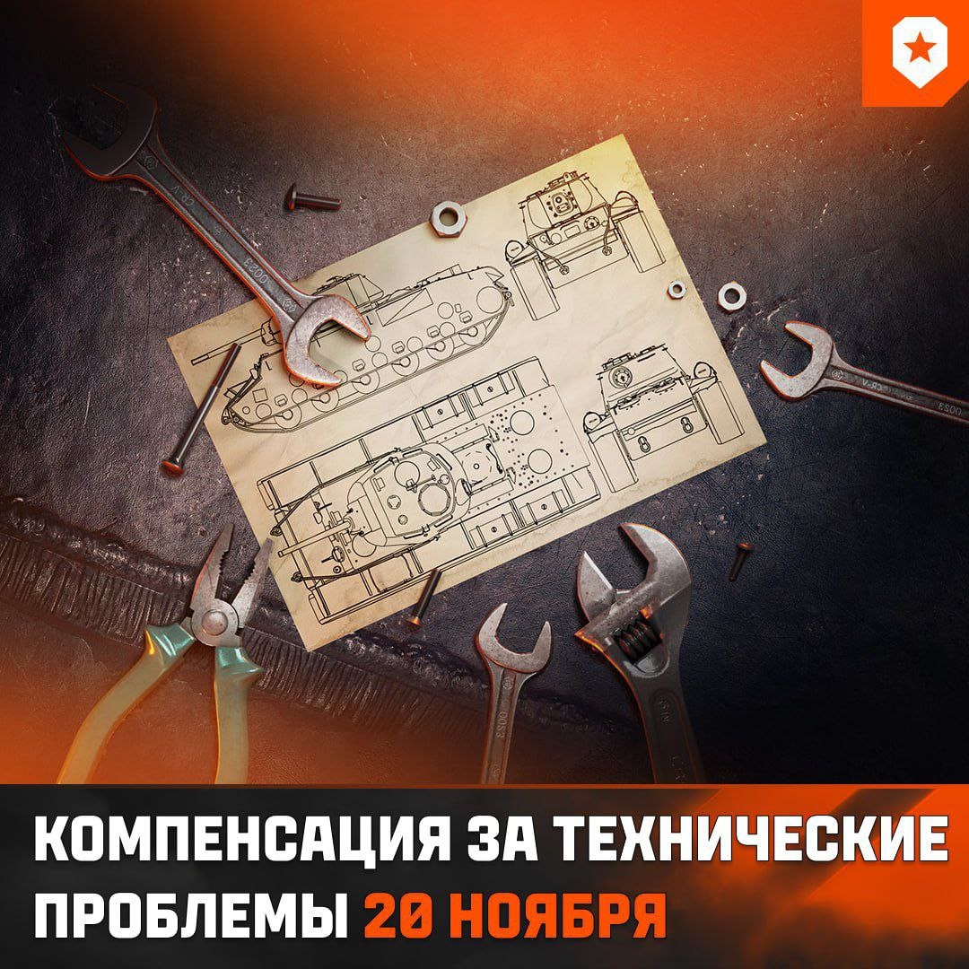 📣 Уважаемые игроки! 20 ноября наблюдались проблемы в работе различных игровых и веб-сервисов «Мира танков». В качестве компенсации за неудобства всем, кто сыграет хотя бы один бой в период с 21 ноября 13:03 (МСК) до 24 ноября 3:00 (МСК), будут начислены: 🚑 3 дня Танкового Премиум аккаунта 🔣 3 Личных резерва +300% к комбинированному опыту на 1 час 📶 3 Личных резерва +100% к опыту на 1 час 🈁 3 Личных резерва +50% к серебру на 1 час Благодарим за терпение и понимание 🫶
