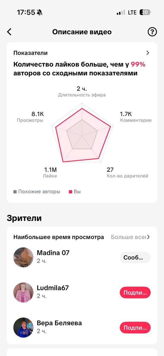 🎤 Ba4boy LIVE — Эфир #26 ⏱ Длительность: 2 часа 📊 Показатели эфира: • 👁 8.1K просмотров • 💬 1.7K комментариев • ❤️ 1.1M лайков • 🎁 27 дарителей • 🚀 Лайков больше, чем у 99% авторов со схожими данными ⸻ 👥 Топ зрители (только реальные имена): 💜 Madina 07 — 2 часа 💜 Ludmila67 — 2 часа 💜 Вера Беляева — 2 часа ⸻ 💬 Ba4boy: “Каждый эфир становится особенным благодаря тем, кто смотрит искренне и остаётся до конца. Ваше внимание делает мои стримы живыми. Спасибо всем, кто приходит с открытым именем — вы настоящая сила. Вы украшаeте эфир своим присутствием.”