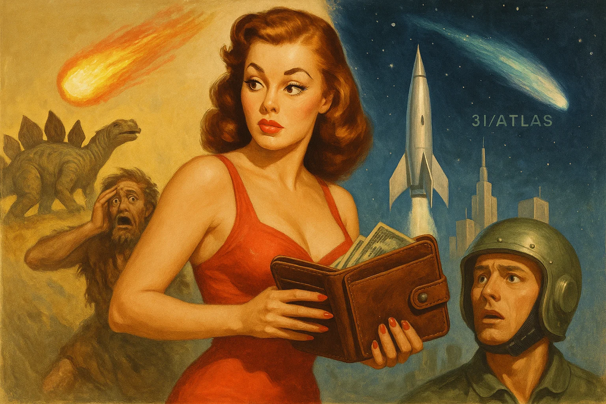 Существует одно простое правило: чтобы понять, что по-настоящему тревожит человека, нужно заглянуть в его кошелек. Во что он вкладывает деньги? За что он готов платить? Страхование — это и есть то самое идеальное зеркало, в котором отражаются коллективные страхи целой эпохи. Давайте сравним, как менялись эти страхи за последние полвека, и причём здесь загадочная комета 3I/ATLAS (которая изображена на картинке). 📻 50 лет назад: страх за имущество и стабильность Представьте себе СССР 1970-х. Индустриальное общество. Личное - это, например квартира, дача, машина (редкость и роскошь!), а главное — жизнь и здоровье. Государство через систему страхования предлагало понятные и необходимые продукты: 🛰️ Сегодня: страх за самореализацию и непредсказуемость завтрашнего дня. Стабильность в нестабильности. Наше время — эпоха цифровых технологий, индивидуализма и сложных финансовых инструментов. Страхи стали тоньше, но оттого они не менее сильные. Страх ответственности: мы боимся не столько потер
