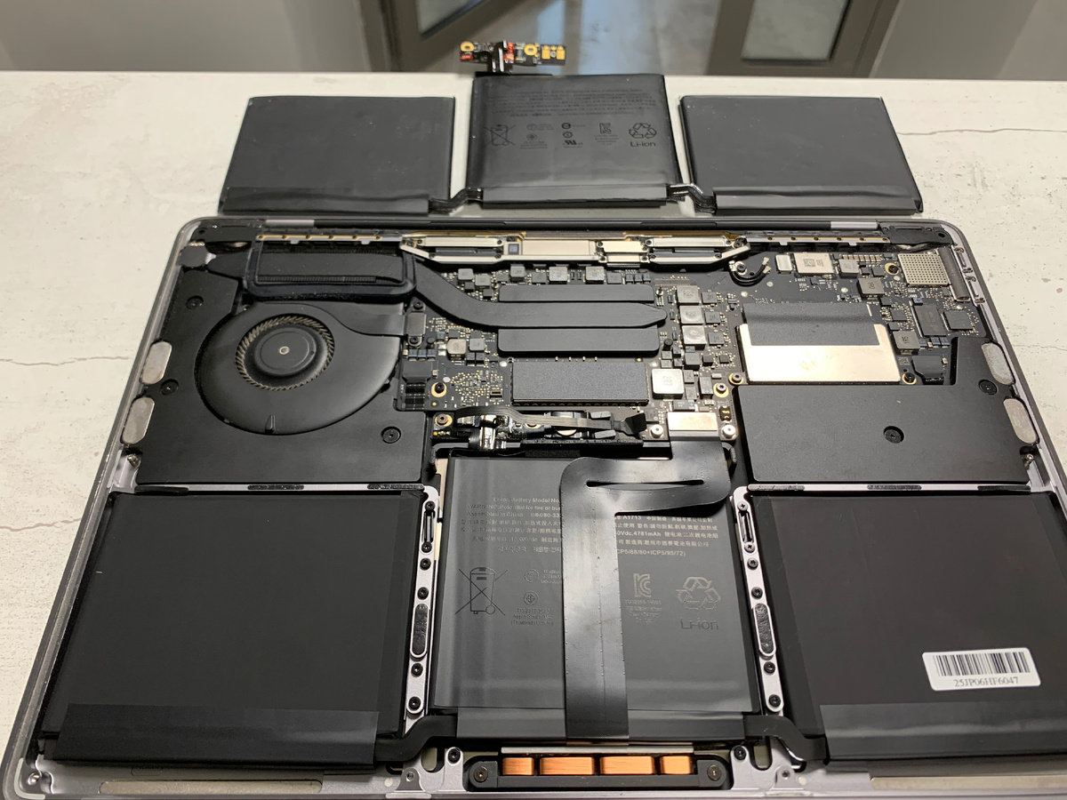 Дальше аккуратная разборка. Отключаю батарею от платы и обязательно снимаю тачпад. На A1708 это мой личный “закон”. Один раз давно по привычке пытался снять батарею, не освобождая тачпад, и снес пару мелких элементов на его плате. Восстановил, конечно, но с тех пор проще потратить лишние 10 минут на винты, чем потом ловить приключения.