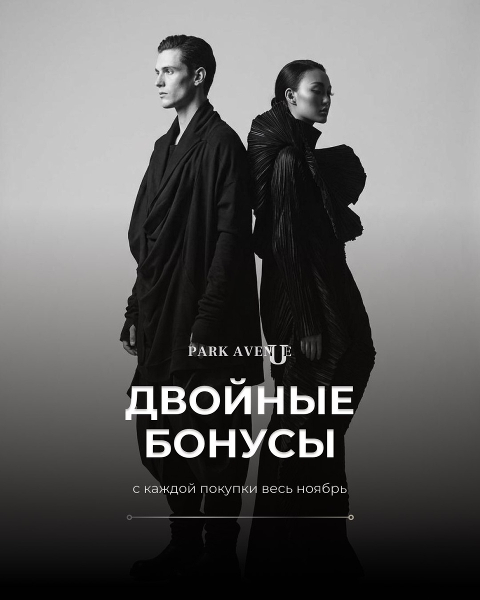 ➡️ В ноябре женские и мужские пространства PARK AVENUE работают в другом ритме: каждое приобретение приносит двойной бонус Вещи, представленные в наших бутиках, рождаются из ремесленных техник и дизайнерской мысли, которая не зависит от колебаний сезона. Они формируют устойчивый гардероб, где каждая деталь имеет своё основание и не требует адаптации под моду момента. Пусть будет обыкновенно всё, кроме вас! ⏭️Навагинская, 3 ⏭️Островского, 4