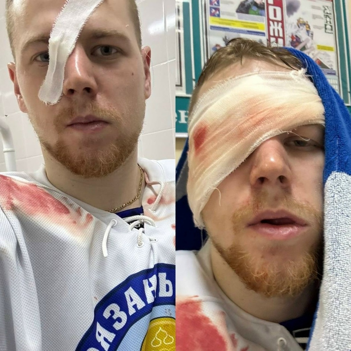 Защитник «Разяни» Аким Тришин получил жуткую травму. В матче ему прилетело коньком прямо по лицу.