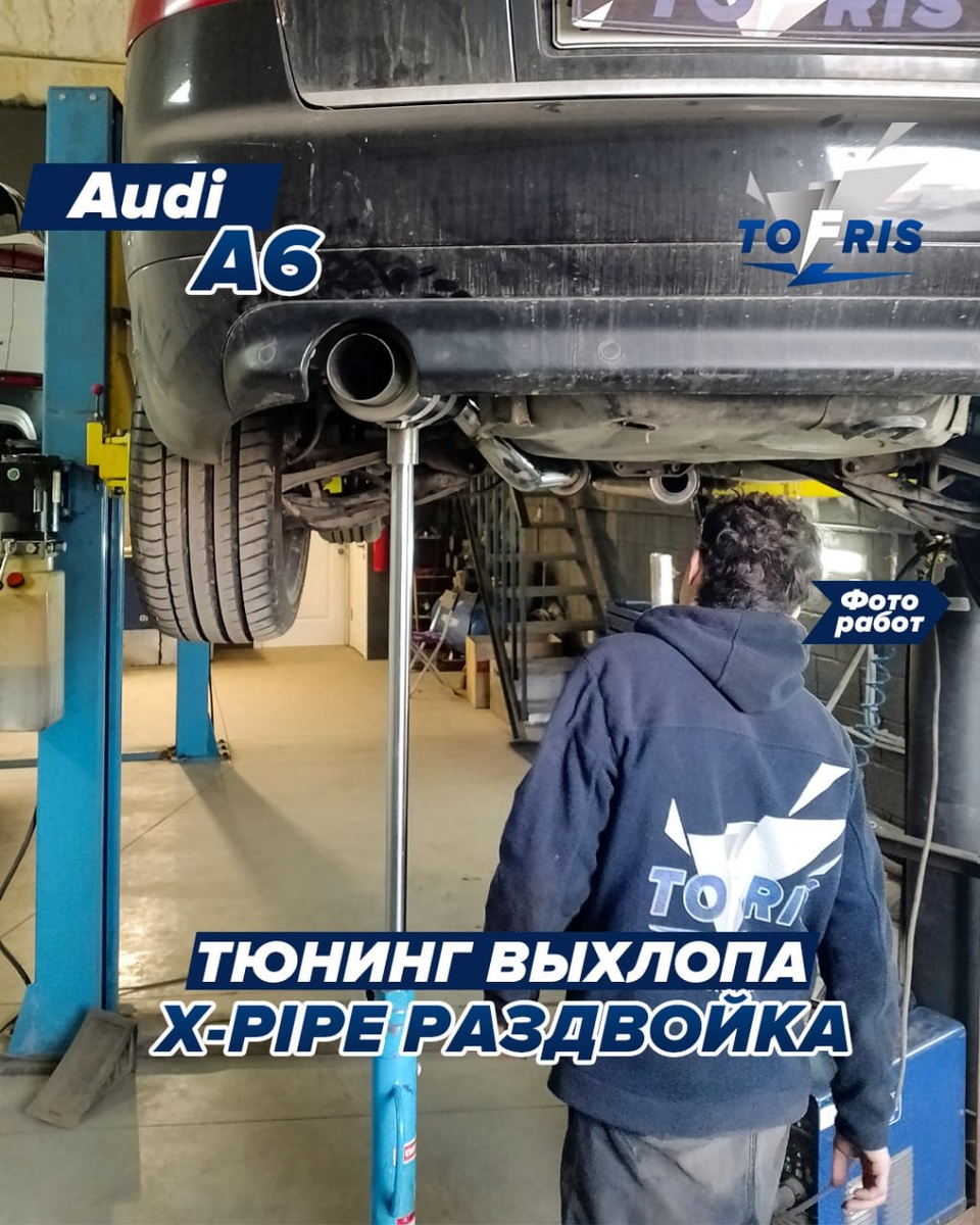 Audi A6 2.7 BiTurbo: готовим зверя под капотом! 🚀 В нашем сервисе — настоящая легенда: Audi A6 2.7 BiTurbo 2002 года. Пробег — уверенные 265 000 км, а цели у владельца амбициозные — раскрыть потенциал мотора и выжать честные 400 лошадиных сил! Для такой мощности стандартная выхлопная система — уже тесные оковы. Поэтому мы проводим комплексную модернизацию. 🔧 Что уже сделано для могучего выхлопа и прирота мощности: ✔️ Удалены штатные катализаторы — главные «душители» потока. ✔️ Установлены даунпайпы для эффективного отвода выхлопных газов. ✔️ Собрана индивидуальная раздвоенная трасса через X-Pipe из нержавеющей стали 409 на 63 трубе. ✔️ Добавлены 2 резонатора 110х250х63 с набивкой из E-Glass (сталь AISI 304) для правильного звука. ✔️ Интегрированы 2 пламегасителя 110х500х63 из стали AISI 409 для комфорта и долговечности. 🎯 Что в итоге? Мы не просто «сварили трубы». Мы заложили основу для будущей прошивки: освободили выхлоп, снизили сопротивление и подготовили авто к тому, чтобы