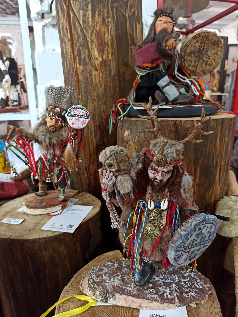 В превью к алтайскому туру я рассказывала, как страдал мой внутренний планировщик от невозможности что-то забронировать заранее, ещё из дома. Я педант, люблю, когда путешествие расписано по дням и имеет варианты А, Б и В на случай любых непредвиденных обстоятельств. Утром я позвонила в турфирму относительно какой-нибудь экскурсии на завтра. У них уже не было свободных мест, зато было вот прям на сегодня, через час! Так мы попали на тур под названием "Кругосветка". Автобус забрал нас от отеля и повёз по Чуйскому тракту, удивительному, с лежами поперёк дороги коровами и бродячими по лесу лошадьми. Первая остановка была уже через полчаса, возле турбазы "Царская охота". Приехали мы сюда по двум причинам: Во-первых, ради галереи АртАй, где собрана коллекция изумительных кукол, сделанных мастерами со всей России. Здесь и сказочные герои, и элегантные дамы, и какие - то забавные мультяшки, и, конечно же, местные, алтайские персонажи, например, Принцесса Укока. Так нарекли мумию молод