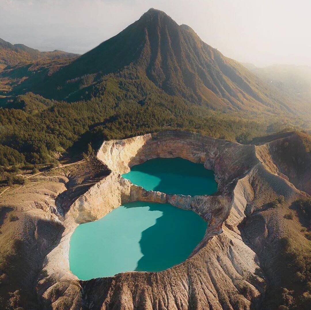 Когда я впервые поднялся на смотровую площадку Келимуту, утро ещё не проснулось. Туман висел так низко, что казалось он держит гору за плечи. И вдруг сквозь молочную дымку открылась картина, три озера, лежащие в соседних кратерах, но будто принадлежащие разным мирам. Одно - густое, тёмно-синее, как чернила. Другое - бирюзовое, будто подсвеченное изнутри. Третье - медное, почти металлическое. На секунду ловишь себя на мысли, что стоишь не на Земле. Учёные приезжают сюда десятилетиями, потому что таких озёр в природе нет нигде. Туристы же - за тем самым моментом, когда мир будто раскрывает свою скрытую сторону. Келимуту поражает тем, что эти озёра не просто разные - они меняют свои цвета независимо друг от друга, живут по своим законам и ритмам. Келимуту расположен на острове Флорес, в сердце Индонезии. Это совсем не Бали, здесь меньше шума, меньше толп, больше сурового тропического спокойствия. Ближайший город - Монди, откуда начинается путь, который давно стал своеобразным ритуалом для