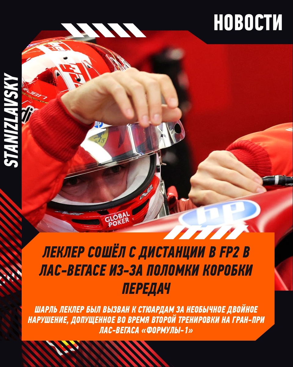 Пилот Ferrari Шарль Леклер сошёл с дистанции во второй тренировке в Лас-Вегасе. Позже оказалось, что у него возникли проблемы с коробкой передач на заключительных этапах сессии. "Что-то сломалось. Коробка передач. Могу я переключиться или нет?" — спросил Леклер у своего гоночного инженера, на что получил ответ: "Не переключайся". Из-за этого инцидента Леклер пропустил несколько кругов в конце FP2, но у монегаска могут возникнуть дополнительные проблемы. 🚨 В отношении Леклера будет проведено расследование по двум предполагаемым нарушениям Спортивного регламента FIA Формулы 1. Леклер якобы не вернул руль на машину, после того как покинул её, и не отключил систему ERS на своей Ferrari после остановки.