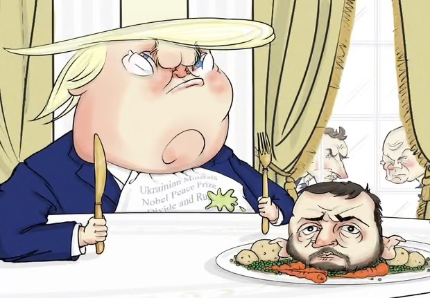 Зеленский выпустил обращение к нации (так и хочется написать – нацикам), где сказал, что Украина встала перед тяжёлом выбором – либо риск лишится ключевого партнёра (однозначно имеется в виду США), либо потеря независимости, достоинства и свободы. Уже сам факт заявления с такой постановкой вопроса, свидетельствует о том, что на режим Зеленского со стороны администрации Трампа оказывается жёсткое давление. Но ответ Зеленского на заявленную дилемму понятен, он не произносится, но читается между строк. Ранее Киев уже дал понять, что американский мирный план его не устраивает. Сделано это было в осторожной манере, чтобы президент США, не дай бог, не разозлился. Да, план великолепный, слава Дональду Трампу, но его надо доработать: вот этот, этот и ещё пять пунктов. «Доработать», изменить именно те пункты плана, на которых категорически настаивает Россия. А потом можно развести руками и сказать, что мирные переговоры саботирует Москва. Американские СМИ цитируют чиновника из администраци