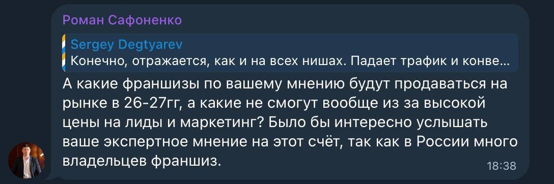 ❓Какие франшизы будут продаваться в 26-27 гг