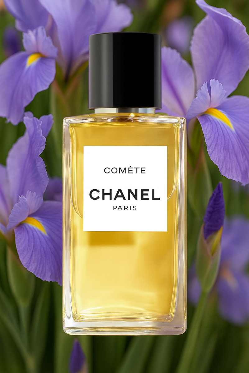 В 2024 году дом Chanel представил удивительно деликатный аромат Comète. В нём действительно угадывается отголосок классической шанелевской школы — лёгкая пудровость, тонкая альдегидность, тот самый винтажный шёлковый шлейф. Но при всём этом композиция предельно современна и минималистична: никаких сложных многослойных пирамид, только тщательно выверенная простота и утончённость. Верхних нот у аромата всего две, но звучат они по-настоящему выразительно. Композицию открывает воздушный, хрупкий цветок вишни, задающий мягкое и сияющее настроение. Его оттеняет тонкая вуаль альдегидов — свежая, искристая, с тем самым винтажным характером. Вместе они создают удивительный дуэт, в котором современная прозрачность цветка вишни соединяется с ретро-обаянием альдегидов. Ноты сердца здесь также сведены к дуэту: ирис и гелиотроп. Ирис добавляет нежную пудровость, смягчая звучание и делая аромат утончённым и деликатным. Гелиотроп же привносит тонкую сладость — чуть карамельную, уютную, едва гурманску