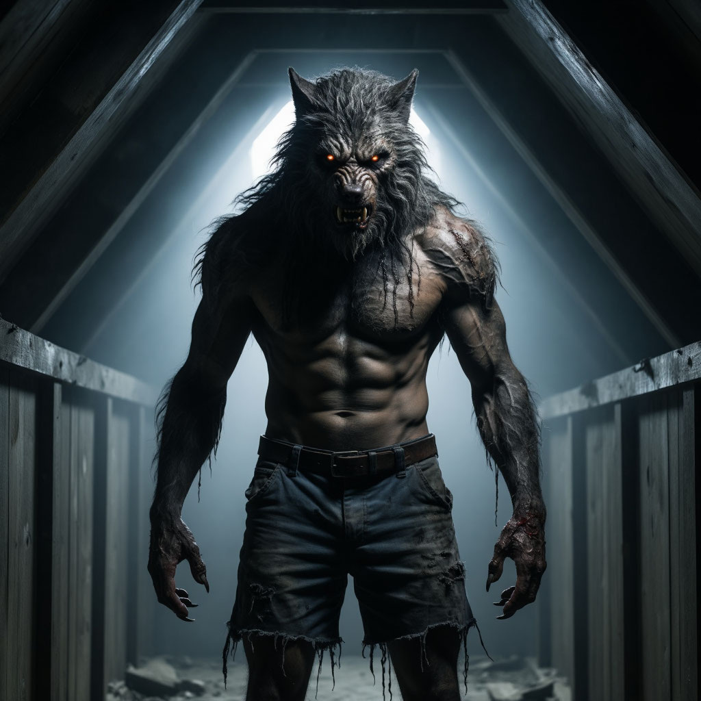 Через некоторое время в проходе с чердака на крышу появился тот, ради кого, собственно, мы все тут собрались. Волколак смотрел на меня огненно-оранжевыми глазами и не двигался. Только один нос, слишком короткий для человека, подрагивал, словно вынюхивая что-то в воздухе. Огромный, ростом около двух с половиной метров, он возвышался над всем вокруг. Морда, хоть и сохраняла некоторые человеческие черты, была покрыта густой серо-белой шерстью, которая скрывала всё, кроме глаз, носа и губ.