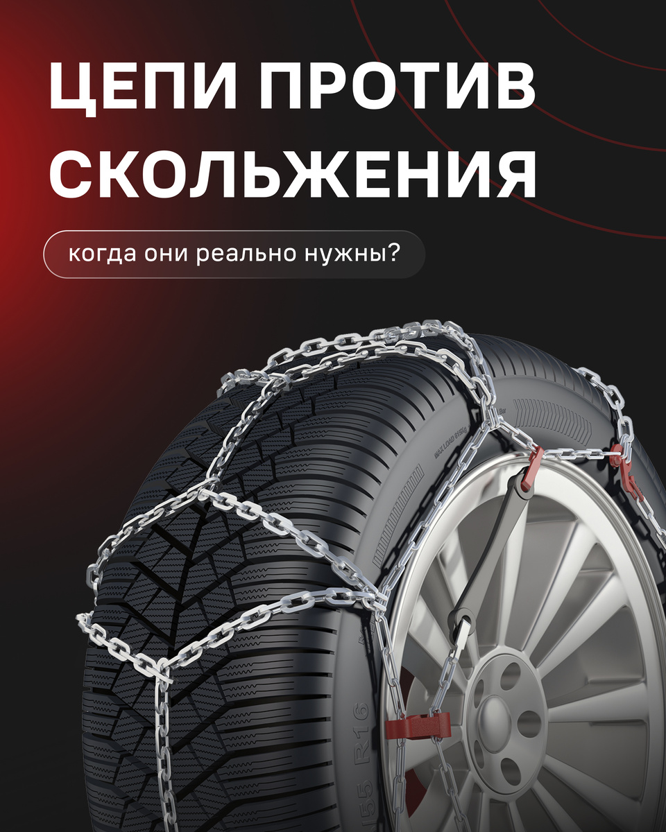 Зимой даже хорошая зимняя резина иногда «сдаётся» — глубокий снег, обледенелые подъёмы, укатанные дворы, просёлочные дороги. В таких ситуациях помогают цепи противоскольжения — простой, но очень эффективный способ повысить сцепление. ❄️ Что делают цепи? Металлические звенья вгрызаются в лёд и снег, создавая: • гораздо лучшее сцепление на подъёмах; • стабильный разгон; • короткий тормозной путь; • защиту от пробуксовки. Это не «тюнинг», а реальный инструмент проходимости, особенно для переднеприводных машин. 🧰 Когда цепи обязательны: горные дороги и перевалы; глубокий свежий снег; ледяная колея; загородные нечищеные трассы; выезд из сугроба после снегопада. На ровном расчищенном асфальте цепи использовать нельзя — они повреждают покрытие и саму шину. 🔧 Какие бывают цепи: • Металлические цепи — максимальная эффективность, подходят для сложных условий. • Текстильные «чехлы» (автоноски) — удобнее в установке, работают тише, но хуже на голом льду. • Ромбообразные, лестничные, комбинирова