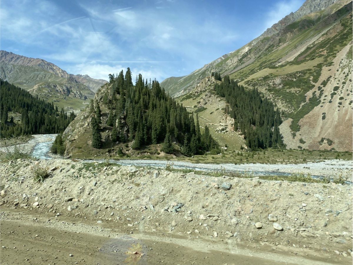 Сегодня особый день: мы с мужем едем к границе с Китаем. С низины, практически от самого берега Иссык-Куля, тянется долгий подъём по серпантинам к всё более и более высоким точкам Тянь-Шаня. Любуемся ошеломляюще восхитительными пейзажами за окном – горы, реки с кристально-лазурной водой. По кромке высокогорных елей можно примерно определить высоту. В горах есть высотная поясность, то есть климат меняется вертикально – в среднем температура воздуха снижается на 6 °C на каждый километр подъёма. Остановка. Полянка с ярко-зелёной травой в чаше гор, по которой хочется бегать и бегать. Солнце жизнерадостно освещает пейзаж. Гид, по совместительству наш водитель, рассказывает о поверье, которое бытует в Киргизии. Если высоко в горах отыскать цветок эдельвейса и сорвать его зубами, загадав желание, то оно непременно сбудется. Пока мы беседуем с гидом, Коля отходит в сторонку. Краем глаза я замечаю, как он что-то высматривает в траве, садится на колени, наклоняется и через несколько мгновений у
