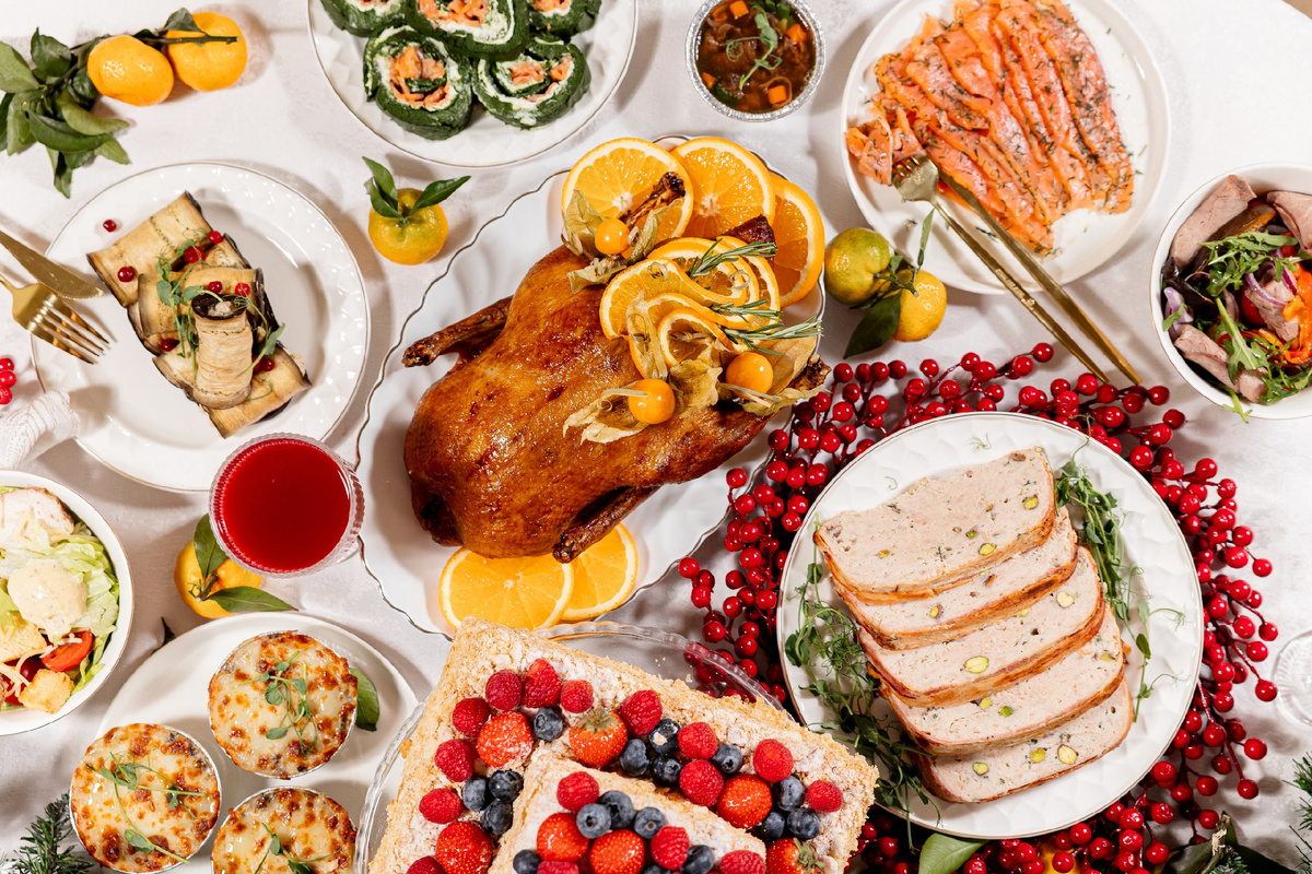 Стоит уже задуматься о том, что будет на вашем новогоднем столе. В этом вам помогут столичные рестораны. Сеть кафе-кондитерских «Брусника»: холодец с говядиной (300 р), галантин из лосося (540 р), грибной жюльен (250 р), заливное из трески (245 р) и рулетики из баклажанов (200 р), Оливье с курицей (100 р) и Селедка под шубой (115 р), запеченная утка (210 р), курица Галантин (215 р) и др. Грузинские винные бары Megobari: бакинские мини-огурцы (790 р) и помидоры «Бычье сердце» (790 р), «Оливье» с ростбифом (830 р), сациви с осетриной (1890 р), креветки на мангале с картофельным паем, ткемали и лимоном (2390 р), запечённая баранья нога с картофелем (4900 р); перепёлки по-царски (6000 р), баранья корейка в брусничном соусе с овощами (15900 р), утка, фаршированная яблоком и брусникой (18000 р), молочный поросёнок (25000 р), запечённый рулет из форели с овощами (20000 р), ягнёнок на вертеле (50000 р) и др.