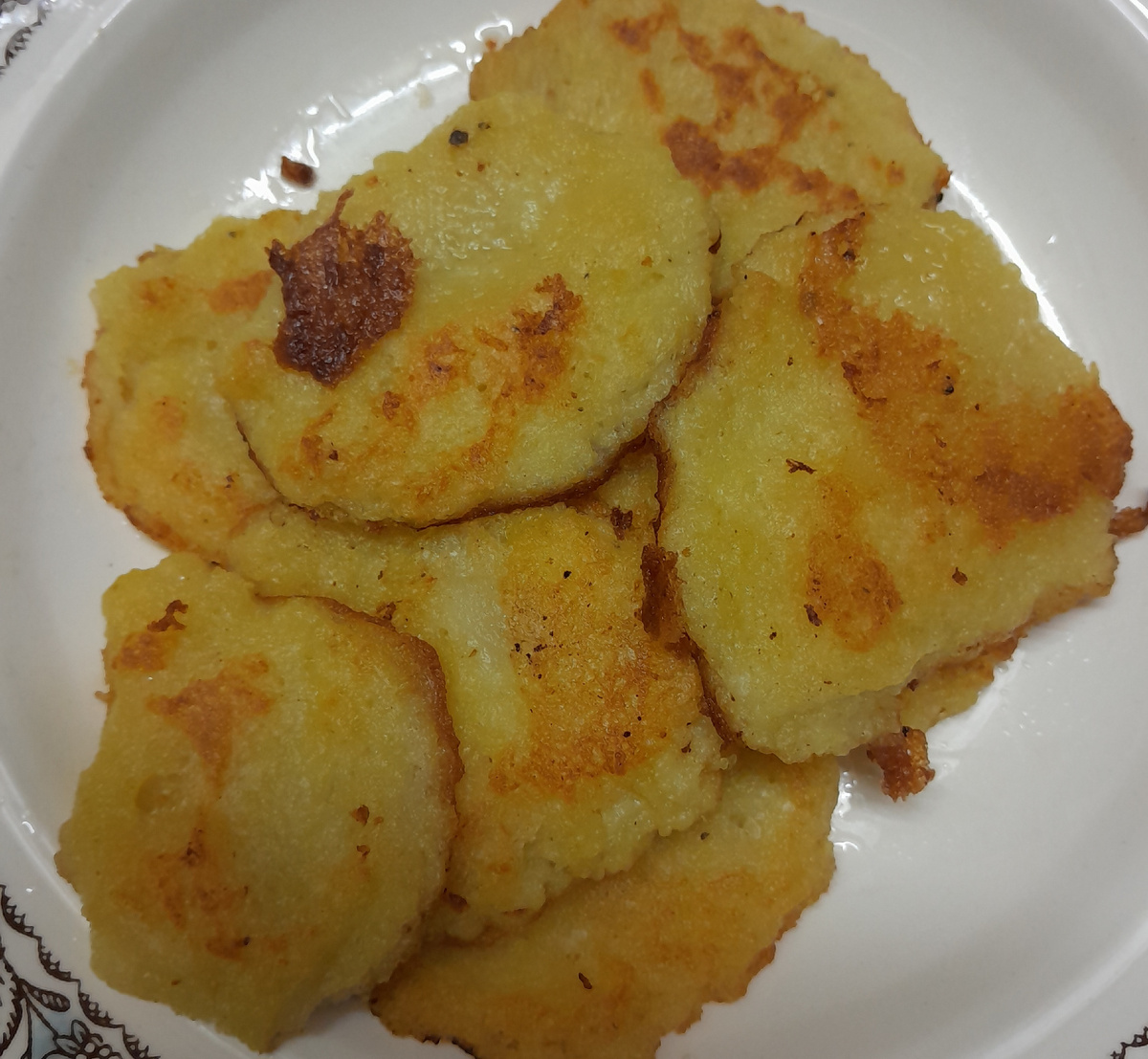 500 г картофеля, луковица, 3 зубчика чеснока - натереть на мелкой терке. Добавить взбитое яйцо, соль 1 ч.л., перец черный молотый, 3 ст. л. муки,перемешать. Выкладывать ложкой на разогретую сковородку с растительным маслом, жарить на среднем огне с двух сторон. Подать со сметаной или майонезом