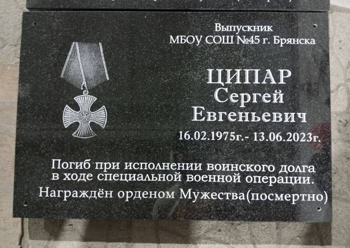 В Брянске увековечили память погибшего в СВО Сергея Ципаря
