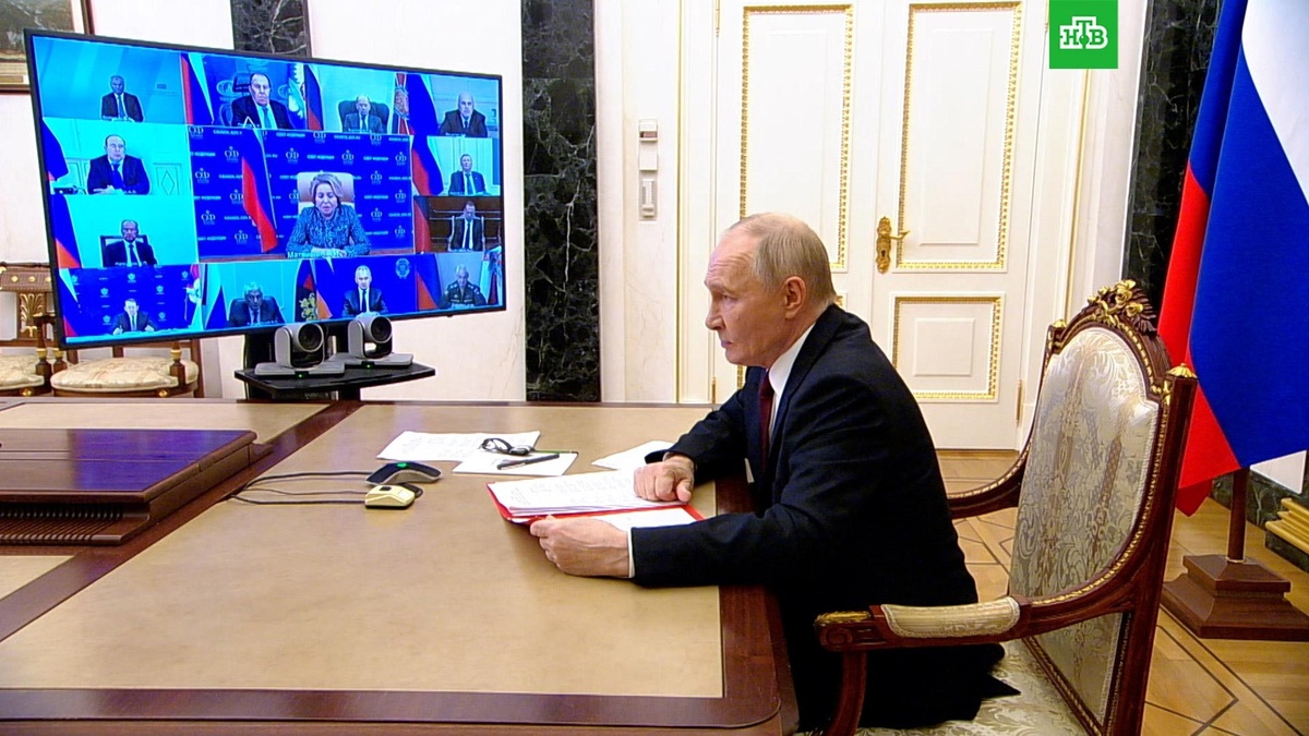 [ Смотреть видео на сайте НТВ ] Владимир Путин в ходе заседания с Совбезом выразил готовность к мирным переговорам по Украине. Владимир Путин: «Россия готова к мирным переговорам, к решению проблем мирным путем. Однако это требует предметного обсуждения всех деталей предлагаемого плана. Мы к этому готовы». По словам российского лидера, предложенный американцами план из 28 пунктов может стать основой для урегулирования на Украине. Владимир Путин: «Полагаю, что он (мирный план США из 28 пунктов. — Прим. Ред.) может быть положен в основу окончательного мирного урегулирования». Президент указал, что Украина и ее европейские союзники до сих пор находятся в иллюзиях о возможности стратегического поражения России, и США не удается до сих пор заручиться согласием Киева по мирному плану. Владимир Путин: «После переговоров на Аляске с американской стороны наступила определенная пауза, и мы знаем, что это связано с фактическим отказом Украины от предложенного президентом Трампом плана мирного уре