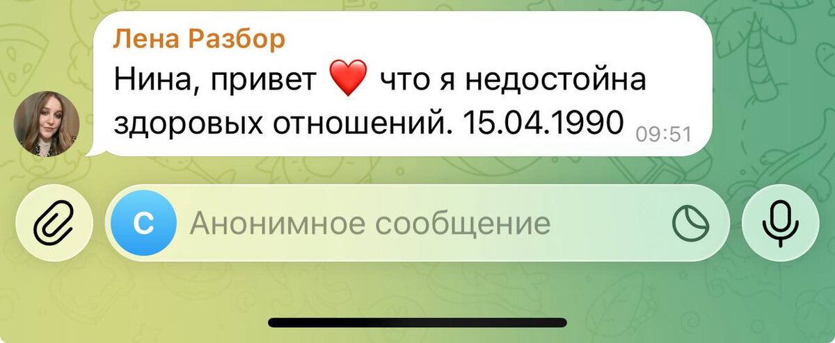 такая установка из за кармического хвоста, Лена