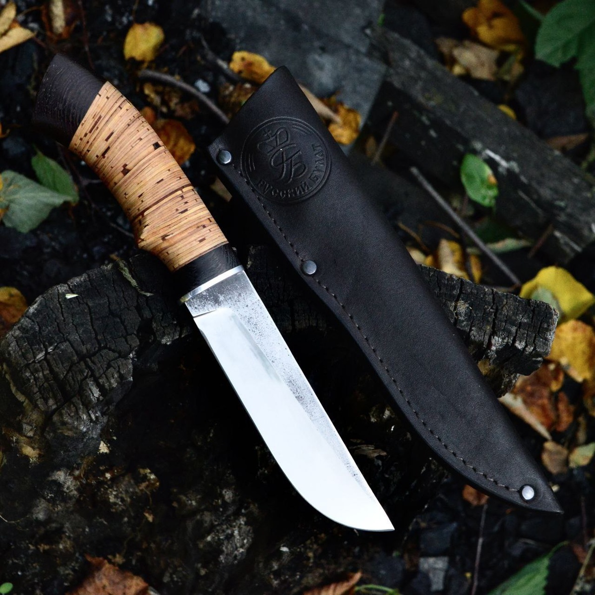 Нож Боровик со следами ковки, сталь 95Х18, береста