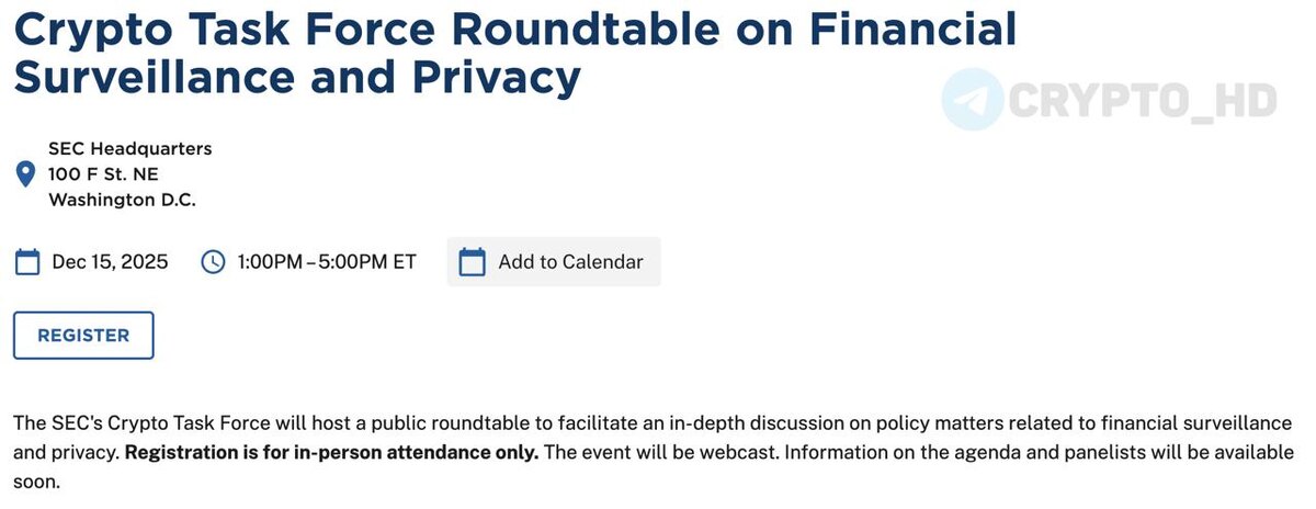 🇺🇸 SEC собирает круглый стол по приватности в криптоиндустрии – анонс