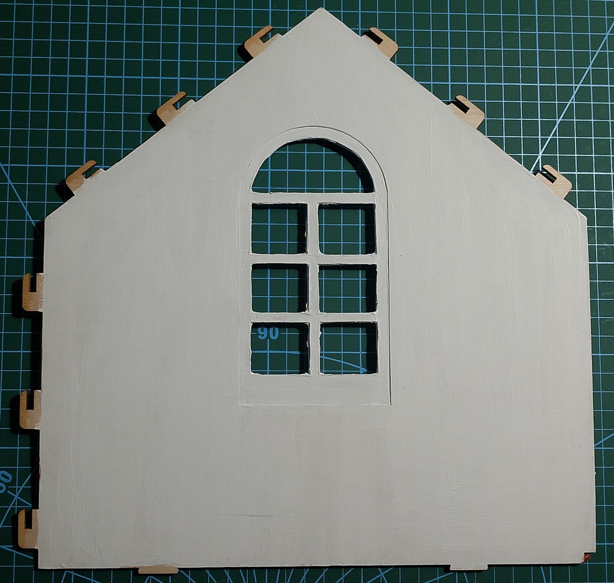 Здравствуйте гости канала и подписчики! Сегодня с помощью краски, кистей №0 или 1 и 3, поролонового тампона и трафарета сделаем сделаем декор стены. Если вы делаете вместе с детьми, то сначала можно сделать фон акриловой краской, дать сутки просохнуть, а по трафарету нарисовать узор гуашью. Гуашь, если что-то не получится можно будет стереть, а если что-то пойдёт не так при рисовании через трафарет акриловой краской, фон придётся заново перекрашивать. А вот если раскрашивать стену полностью гуашью, если ребёнок будет играть в кукольный домик, то об стену иногда можно испачкаться, узор же составляет небольшой процент от общей поверхности и вероятность испачкаться будет небольшой. Также рисунок узора можно распечатать на принтере и перенести с помощью копировальной бумаги. В одной из предыдущих частей мы закрасили внутреннюю часть стены белой краской: Так как цвет фона решили сделать зеленым, то с помощью тампона из поролона нанесем краску на стену кукольного домика. При закрашивании фо