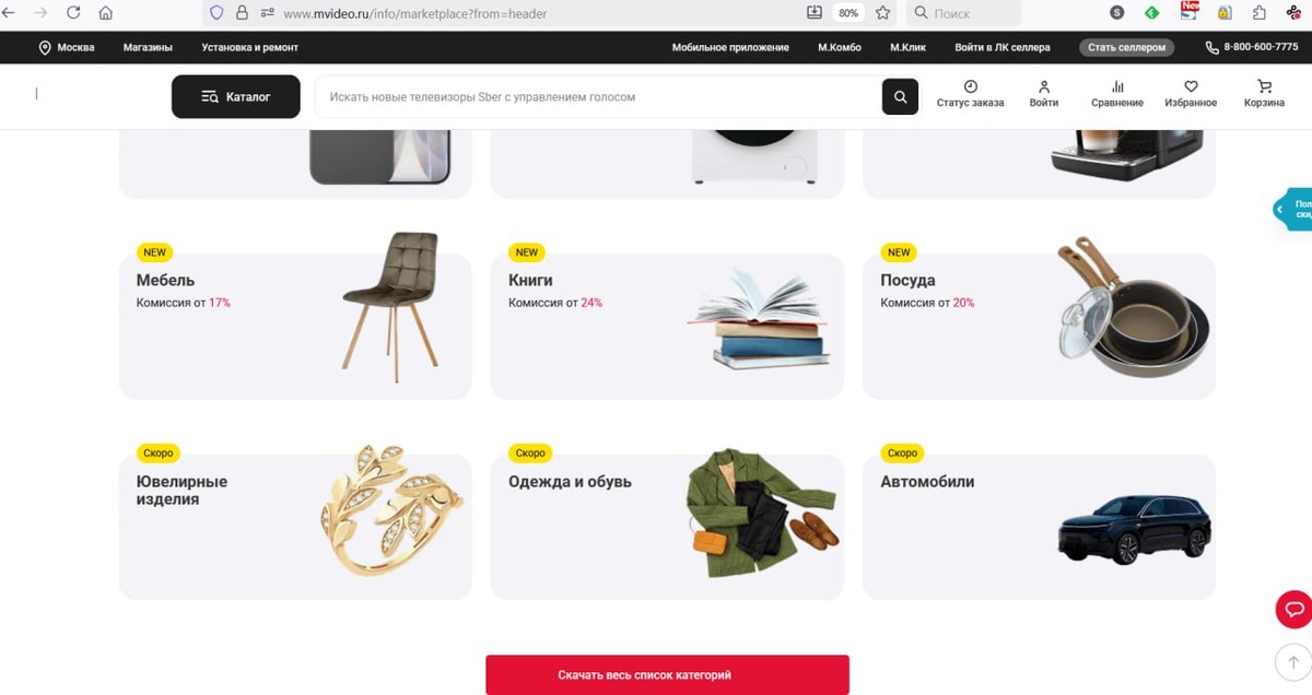 М-Видео анонсировало продажу ювелирных изделий. Это следует из содержания раздела "маркетплейс": https://www.mvideo.ru/info/marketplace Помимо ювелирных изделий ритейлер планирует продажу одежды, мебели и автомобилей. Читайте «Ювелир и закон» в Telegram и ВК