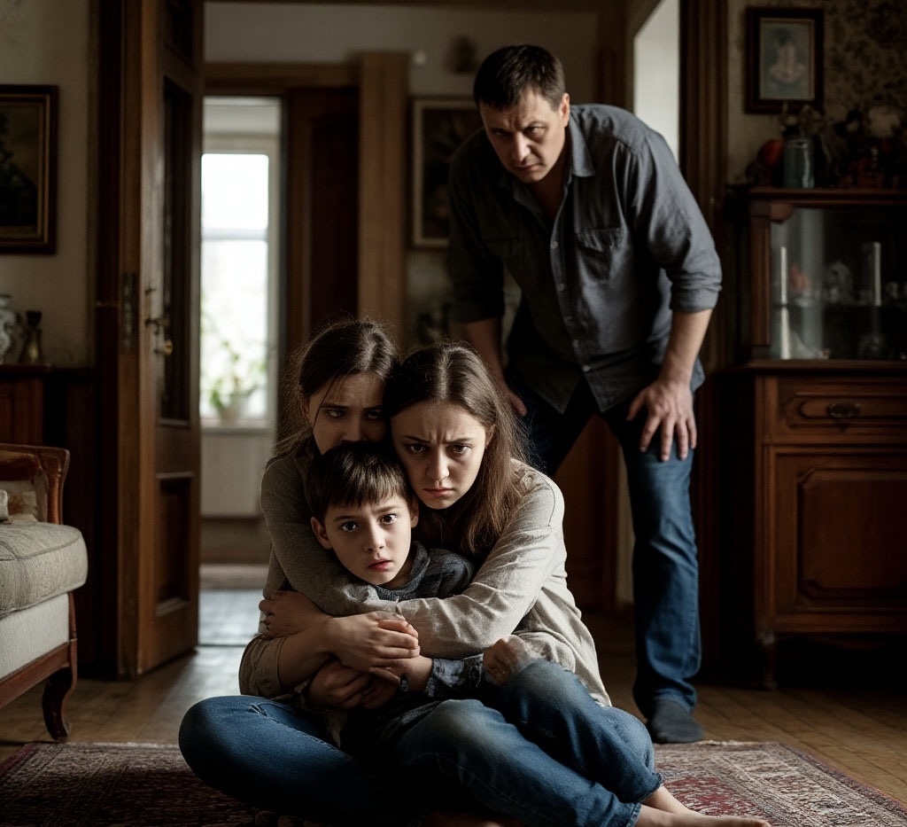 Антон, свернувшись калачиком, инстинктивно вжался в мой бок, его маленькое тельце дрогнуло от этого внезапного грохота и появившейся тени. Я обхватила его рукой, прижимая к себе, чувствуя, как его сердцебиение учащается, передаваясь мне.