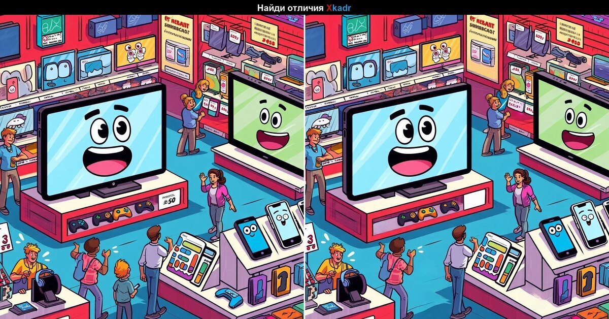 Друзья, всем привет. Сейчас поищем отличия с весёлыми гаджетами. Всем удачи в разгадке. 🎮📺