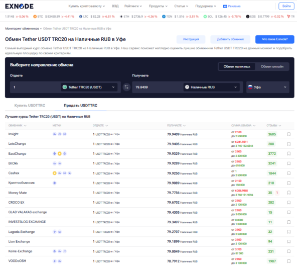 Работа с криптообменниками Уфы становится проще и безопаснее благодаря прозрачным офлайн точкам и проверенным рейтингам сервисов. Использование мониторинга Exnode позволяет сравнивать обменники в Уфе, проверять их адреса, репутацию и отзывы клиентов, что особенно важно для тех, кто впервые планирует обмен USDT в Уфе или проводить регулярные операции с криптовалютой в Уфе. Такой подход снижает риск ошибок и позволяет уверенно работать с цифровыми активами в контролируемом и удобном формате.