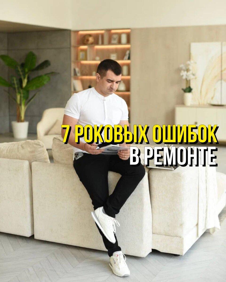 Не вешайте только одну люстру в центре комнаты! В любом помещении нужны разные сценарии освещения — основной свет, фоновая подсветка и локальный свет Откажитесь от цементной затирки на плитке в прихожей и на фартуке кухни! Такая затирка хороша тем, что не пропускает влагу, но неэстетична — впитывает грязь из-за пористости. Берите эпоксидную затирку Не делайте крашенные стены в прихожей! Здесь они быстро пачкаются и царапаются, лучше сделать обои под покраску Не устанавливайте пластиковые подоконники и порожки — они не эстетичные и часто трескаются. Выбирайте искусственный камень или дерево Не делайте мелкую плитку или мозаику в душевой своими руками — это слишком трудоемко! А еще тяжело отмывается — лучше берите широкоформатный вариант Очень пожалеете, если установите теплый пол не на всех свободных зонах — экономия тут небольшая, а контрасты в переходах от теплого к холодному приносят дискомфорт. Лучше постелите теплый пол по всему свободному периметру 📲 Планируете ремонт? Получите б