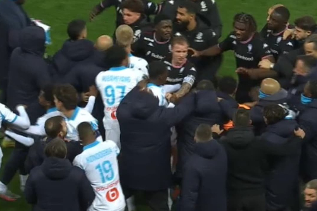 Массовая потасовка произошла во время матча 13-го тура чемпионата Франции по футболу между "Ниццей" и "Марселем". Встреча проходит в Ницце. Инцидент случился после второго гола "Марселя", который был забит на 33-й минуте. Счет стал 2:0. В потасовке приняли участие несколько игроков, находящихся на поле, а также запасные. В ее результате желтые карточки получили вратарь "Марселя" Херонимо Рулли и защитник "Ниццы" Али Абди, оставшиеся на скамейке запасных. После 12 туров "Марсель" набрал 25 очков и занимает 2-е место в турнирной таблице чемпионата. "Ницца" с 17 очками располагается на 9-й строчке.