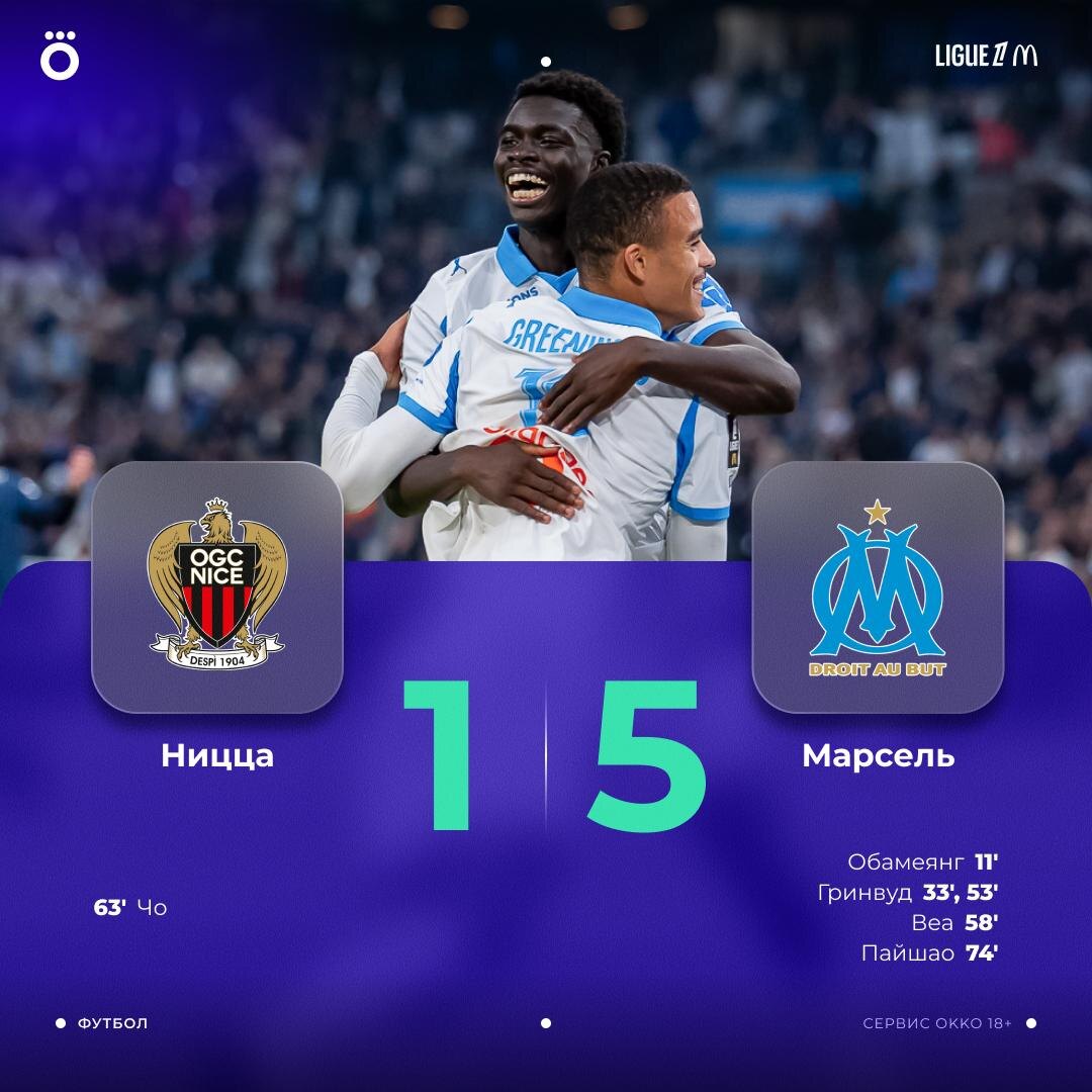 «Марсель» не заметил «Ниццу» и временно вышел на первое место в Лиге 1 ⚽️ У Гринвуда дубль, у Обамеянга — гол и два ассиста. Шикарное возвращение команды Де Дзерби после паузы на матчи сборных 👏