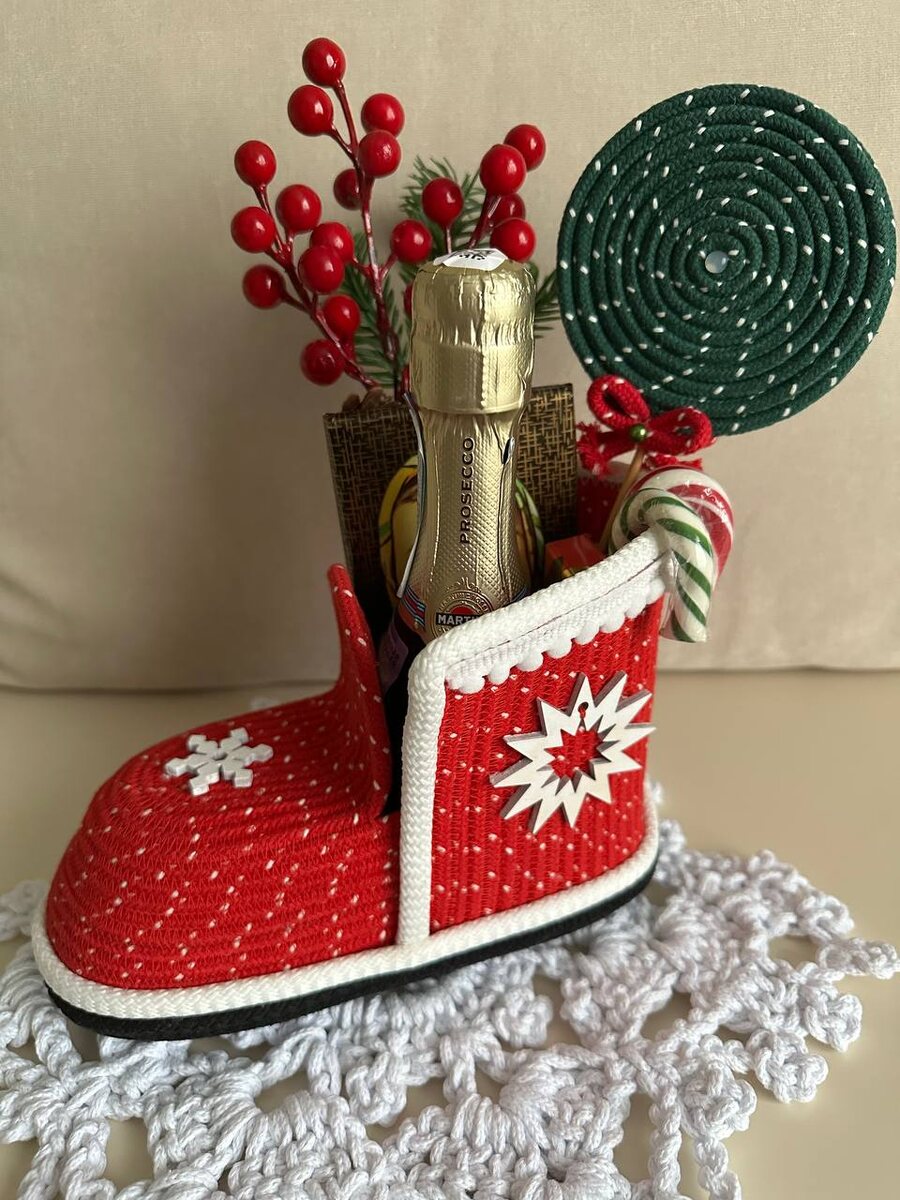 «Горшочек вари!» Вот такой «горшочек» в виде Новогоднего сапожка из хлопкового шнура у меня получился! Новогодний сапожок — это не просто элемент декора, а настоящая традиция, которая приносит радость не только детям, но и взрослым. Он создает атмосферу праздника и напоминает о тепле и уюте домашних встреч. Такой сапожок можно использовать для подарков, сладостей или просто как украшение, которое добавит особое настроение в ваш дом🏠🎄 #сумкиназаказ #подаркинановыйгод #алёнкашьёт #ручнаяработа #подаркиручнойработы