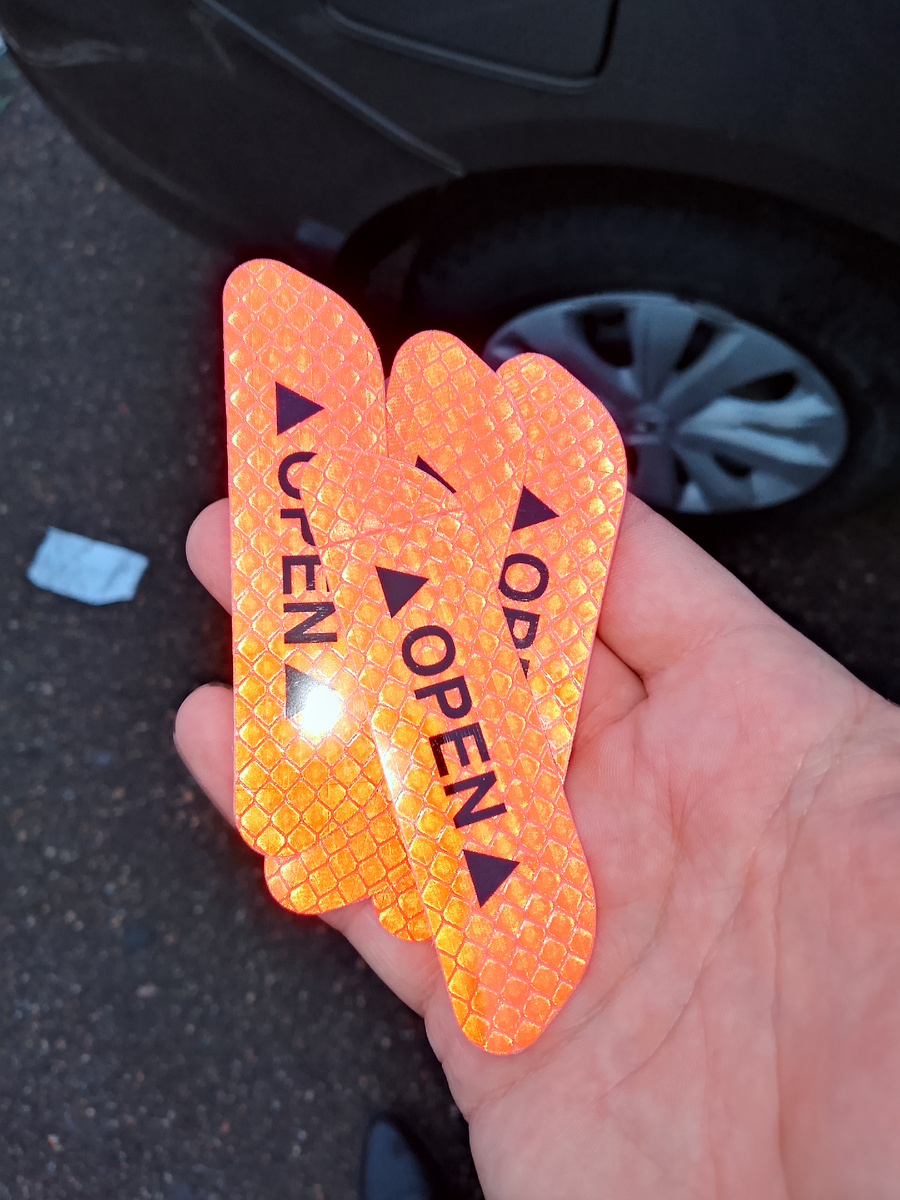 Друзья, всем Привет!) Сегодня решил наклеить свето-возвращатели в торцы дверей на Лалу Весту NG, так же делал на Ладе Гранте. Ссылка на статью ниже *** В автосалоне, в дорогих комплектациях Лада Веста NG, видел даже подсветку в дверях!) Но установить такую пока не решаюсь. Так что пока, решил обойтись свето-возвращающими наклейками. Сами наклейки выглядят так (фото ниже) *** Теперь выбираем место для их установки. *** В общем и писать тут особо нечего, лучше один раз увидеть... (фото ниже) Просто снимаем защитный слой и клеим. Клеить кстати их можно где угодно, как говорится, - любая Ваша фантазия. Я наклеил так (фото ниже) А на обоих дверях получилось так. (фото ниже) Так же 2шт. наклеил на крышку багажника изнутри. Так же было и в Ладе Гранте. Ну и парочка фото ночью с подсветкой (фото ниже) Думаю все...) и писать тут больше особо нечего!) остальное на Ваш суд в комментариях. Все банально просто. Всем Мира, Добра и Удачи на дорогах..!)